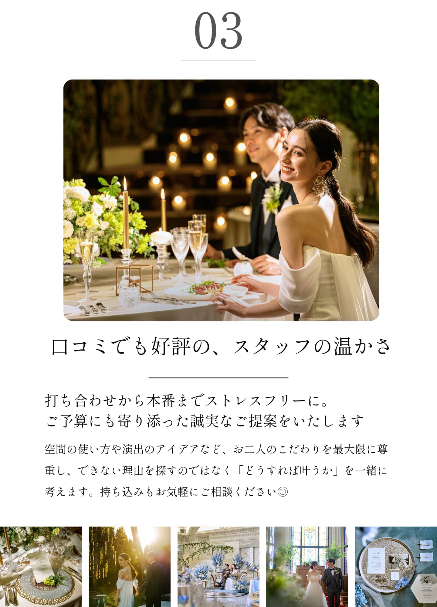 専属スタイリストがサポートし理想の1着をご提案いたします。
